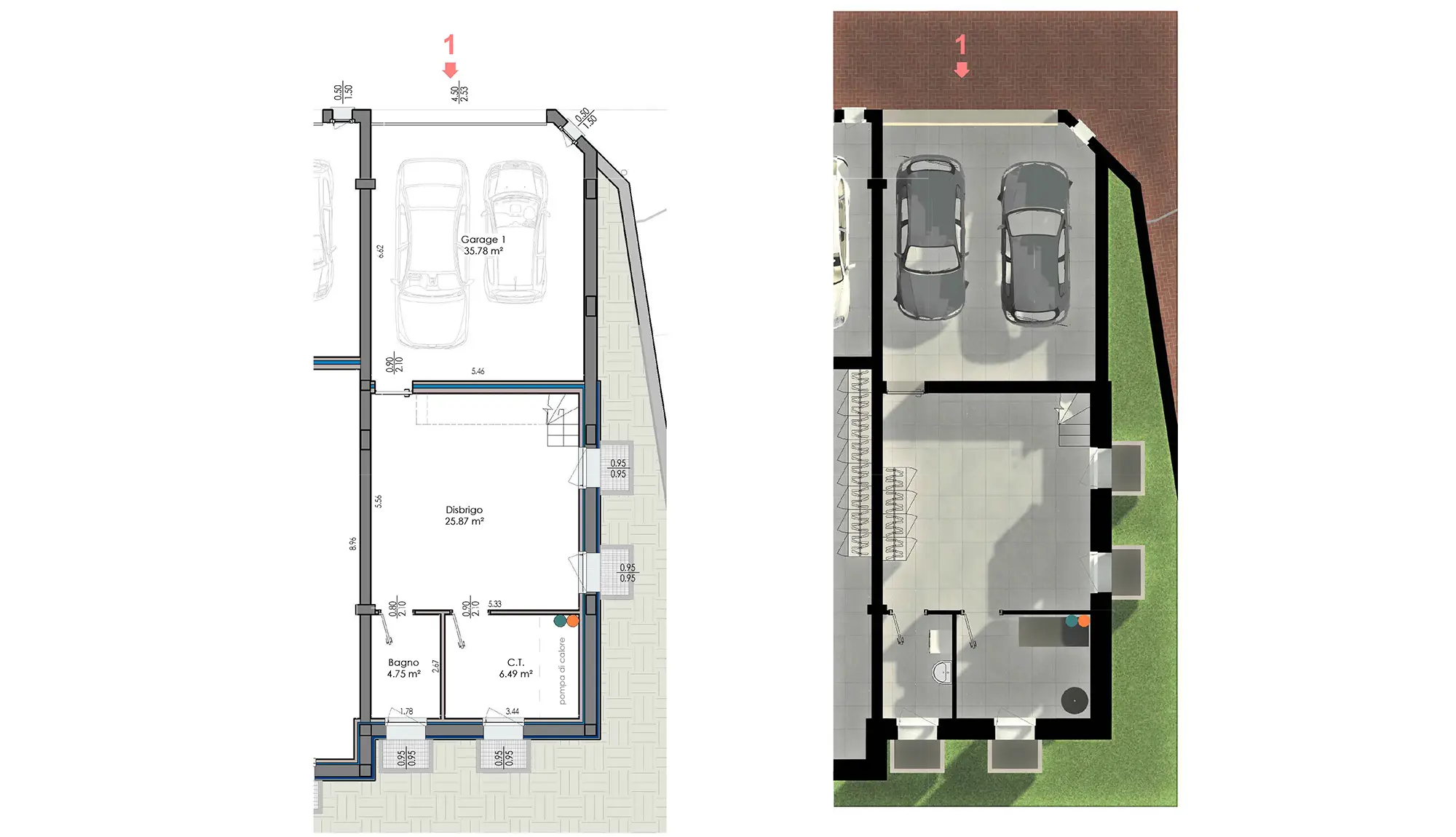 Gli ambienti interni sono progettati per dialogare costantemente con l’esterno attraverso ampie e luminose vetrate. La zona living è spaziosa e accogliente, mentre la zona notte è studiata per garantire riposo e riservatezza. A completare questa splendida proprietà, l’accesso diretto ed esclusivo al piano interrato, dove troverai un comodo garage doppio e ampi spazi accessori.